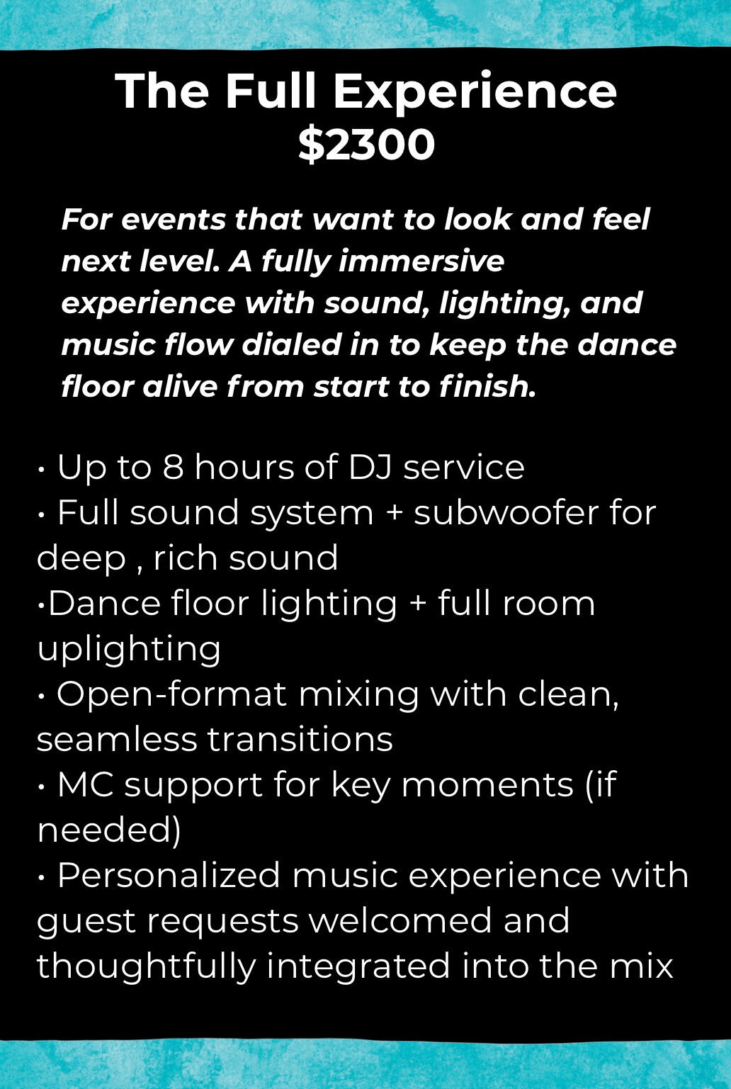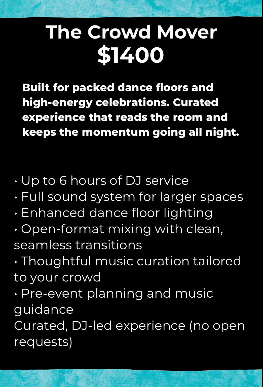 Anyone can have speakers and a playlist, but experience is what allows a DJ to adapt in real time.Every event has its own energy, and things do not always go exactly as planned.Experience is what keeps the night running smoothly, even when things change.It is the difference between a night that feels awkward or disorganized and one that feels natural, polished, and fun.